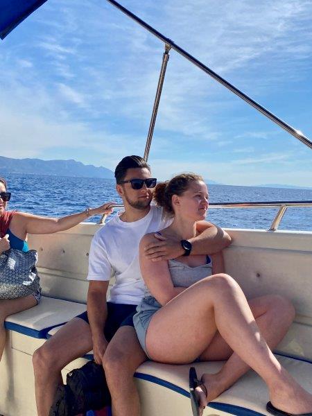 Eenmaal terug helpen manlief en schoonzoon in spe met het uit het water halen van een van de huurboten van papa Josko.