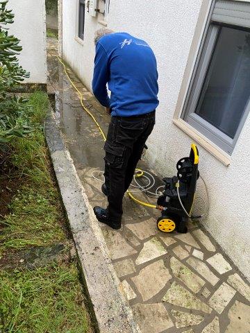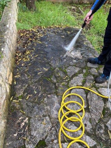Ondertussen ga ik door met het buitenwerk, het schoon spuiten van de stenen en straten rondom het huis.