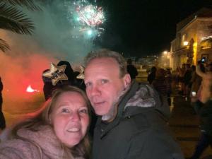 Er is een feest met muziek, vuurwerk en een grote groep met expats van over de hele wereld die ook op het eiland wonen.