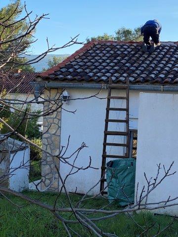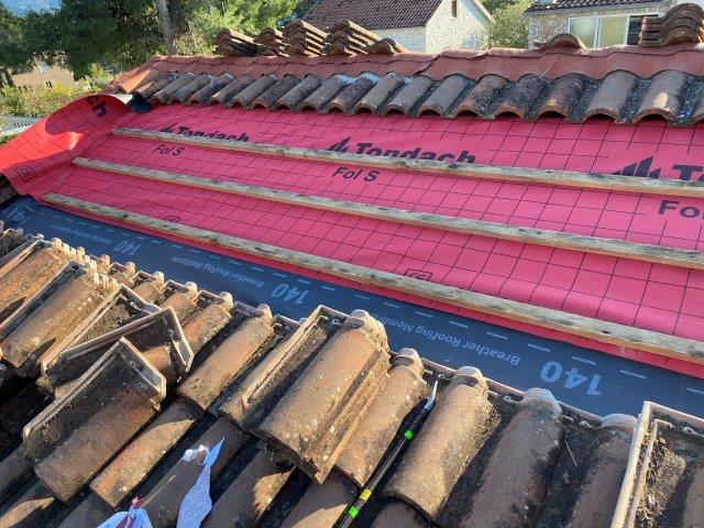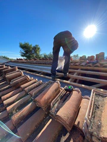 We komen een eind met het dak en omdat er een eind aan onze vakantie komt krijgen we helaas niet het hele dak af.