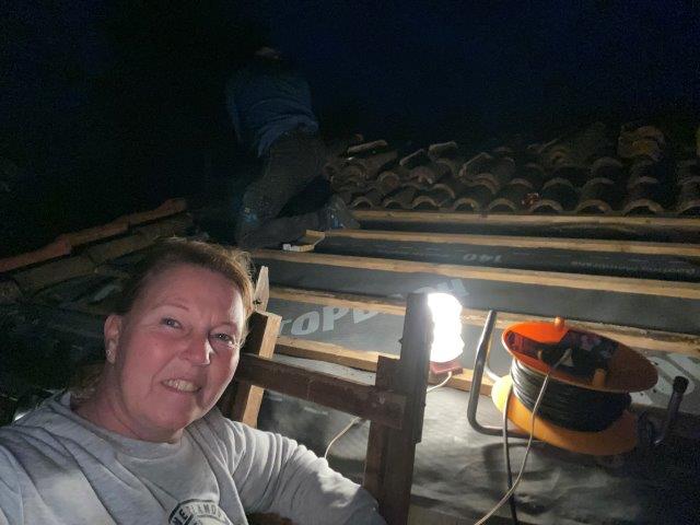 De volgende dag gaan we verder. We zijn er achter dat het dak lekkage vertoont al lijkt het niet overdreven heftig zijn we toch niet gerust dus besluiten we het dak aan te pakken.