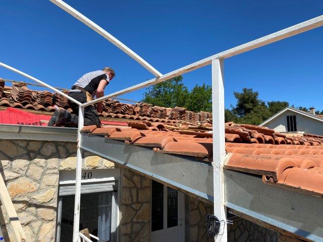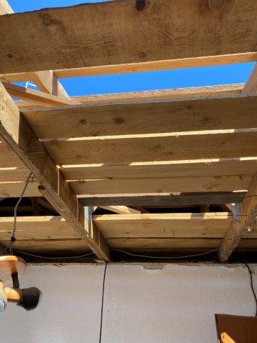 We moeten ook de dakbalken versterken om zo het dak op te vangen omdat we een draagmuur gaan verwijderen.