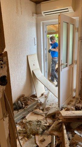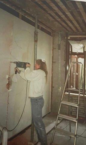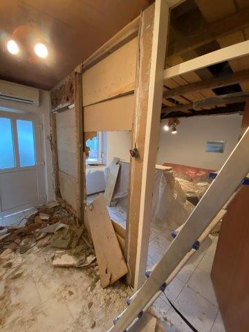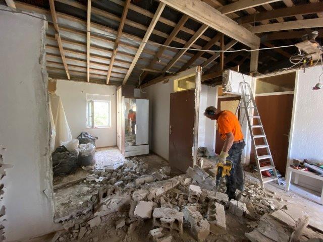 Vandaag staat de muur verwijderen van de woonkamer naar de slaapkamer op het programma.