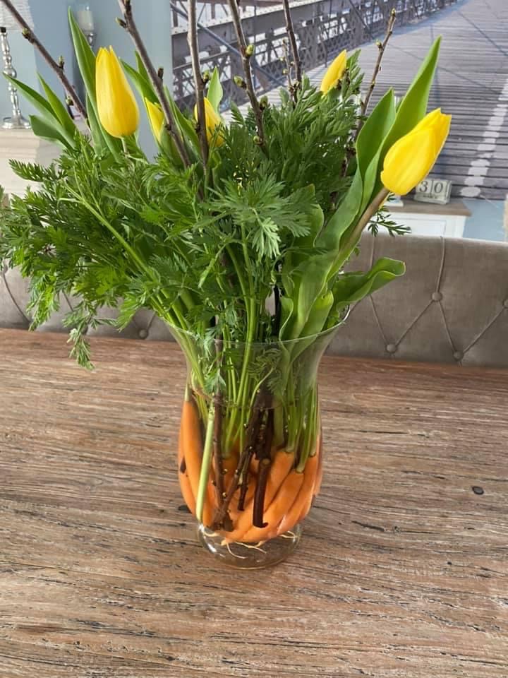Als Pasen voorbij is kun je de wortels gewoon aan de konijnen voeren.
