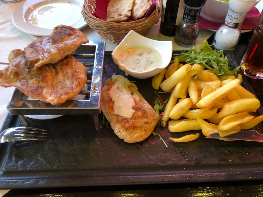 Maar dat wisten we niet toen we een schnitzel met patat een rosti met een eitje en een niet gare worst en 2 kleine drankjes bestelde voor de prijs van 65 Euro !!! Maar ja als je honger hebt eet je alles zeggen ze hahaha.