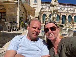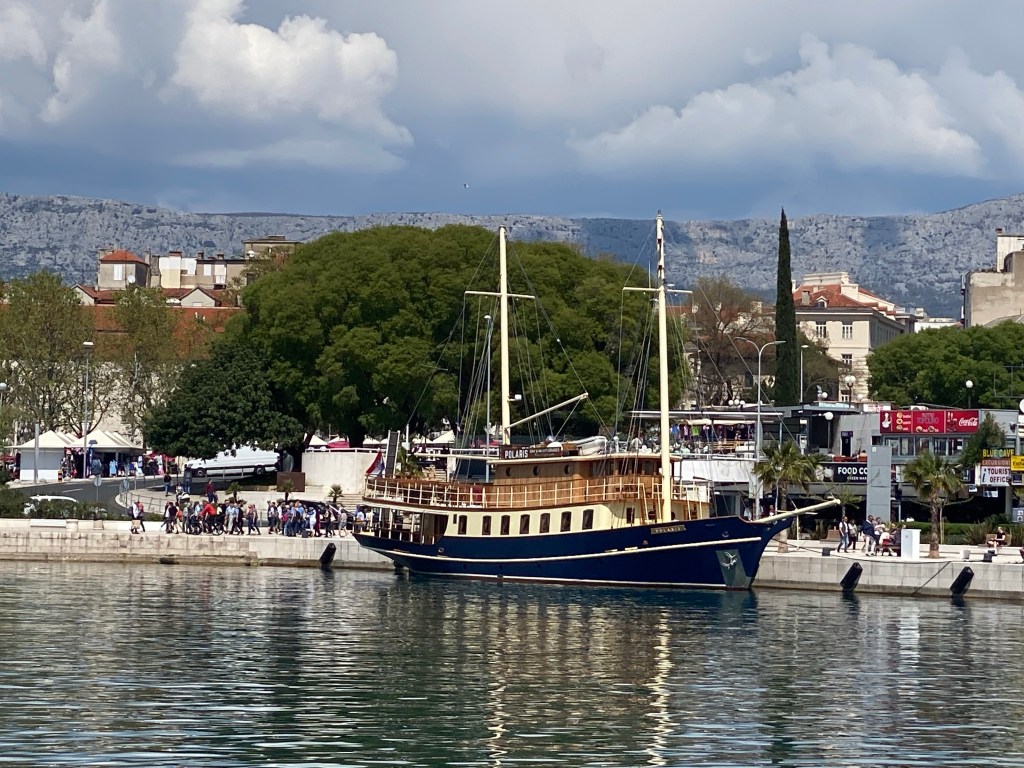 Aangekomen in de haven van Split voelt het meteen als thuis komen. Heeeeeerlijk en wat zijn er al veel toeristen. Ze genieten van de zon op de terrasjes met een drankje of een ijsje en dat vinden wij een goed plan. We parkeren de auto bij de ferry en struinen gelijk door naar een terras en bestellen wat te drinken.