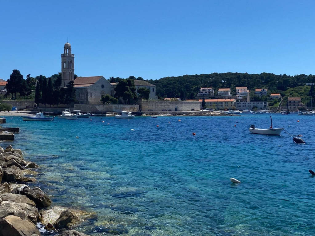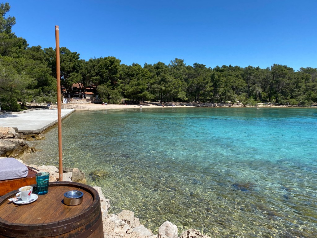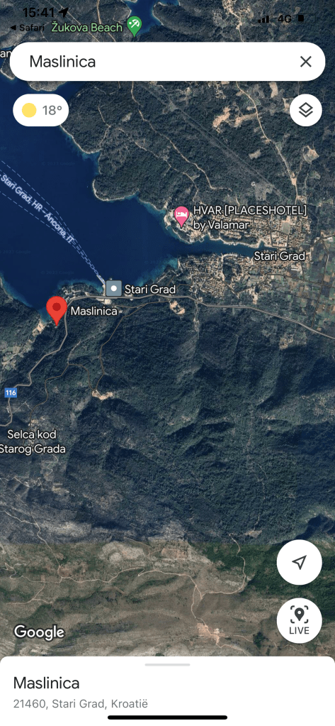 Daarna rijden we naar een van de weinige zandstrandjes op Hvar met de naam Maslinica. Het ligt op 2 km vanaf het centrum van Stari Grad. We waren er zelf nog nooit geweest dus ik was toch wel nieuwsgierig. Het ziet er best leuk uit maar het staat niet in mijn top 5.
