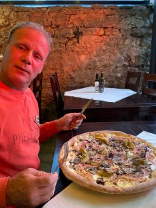 In de avond gaan we zoals gebruikelijk wat eten bij Skojic waar man lief een pizza besteld. En mocht je hier ooit in de buurt zijn bestel pizza maar kom wel met een lege maag !! En neem een xxl bord mee LOL
