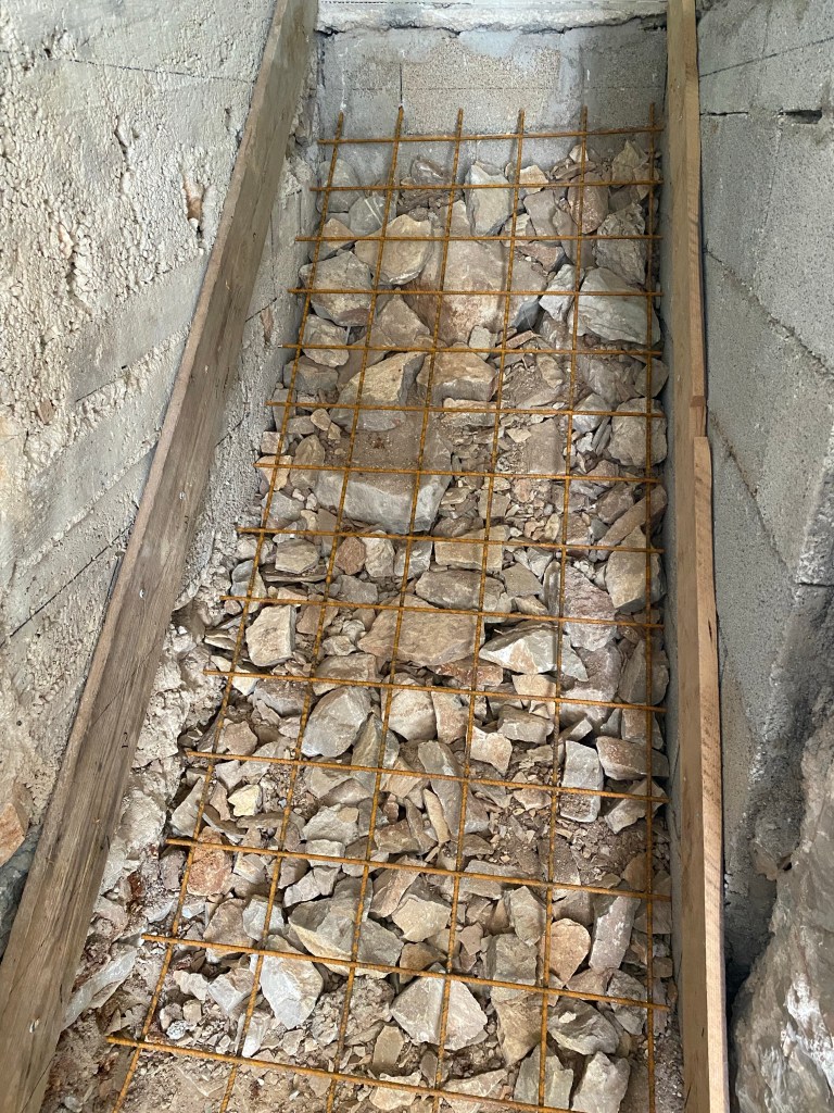 Ons huis is gebouwd op rotsen, wat voor hier overigens normaal is. Er is een gat uitgegraven en toen zijn er rotsblokken los onder het huis gegooid. Daar overheen is een vloer gecreëerd.