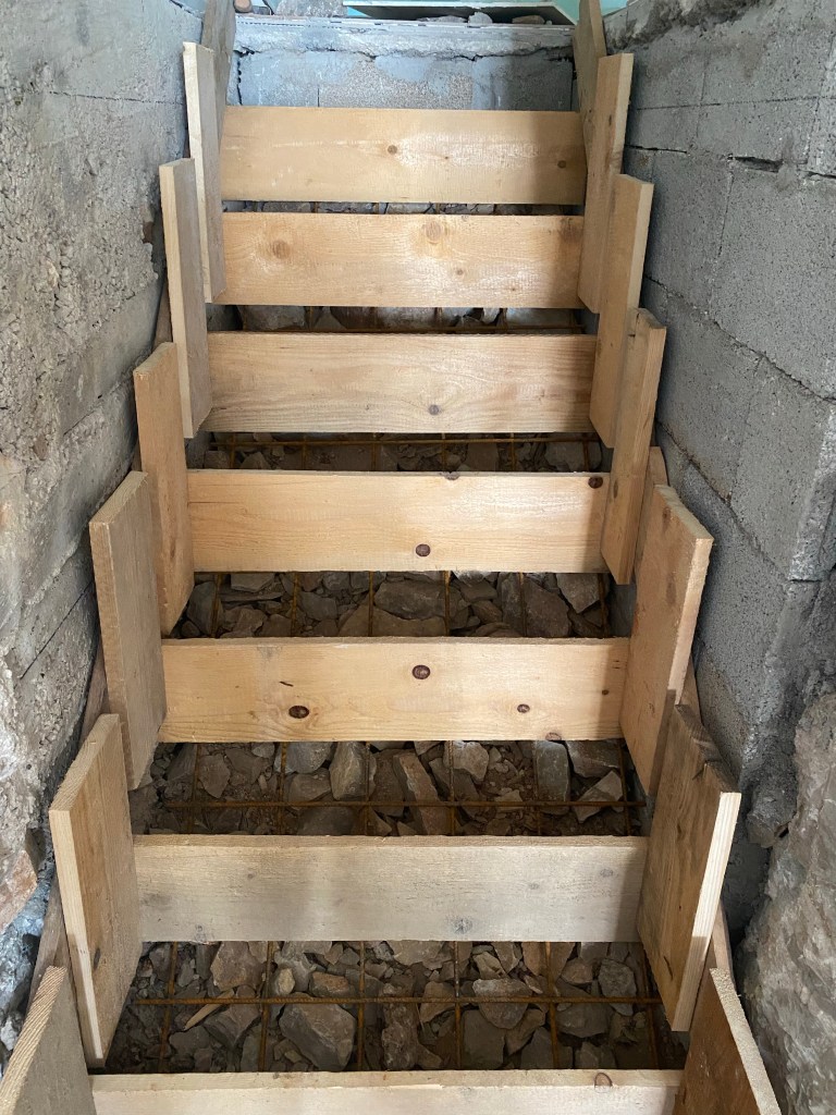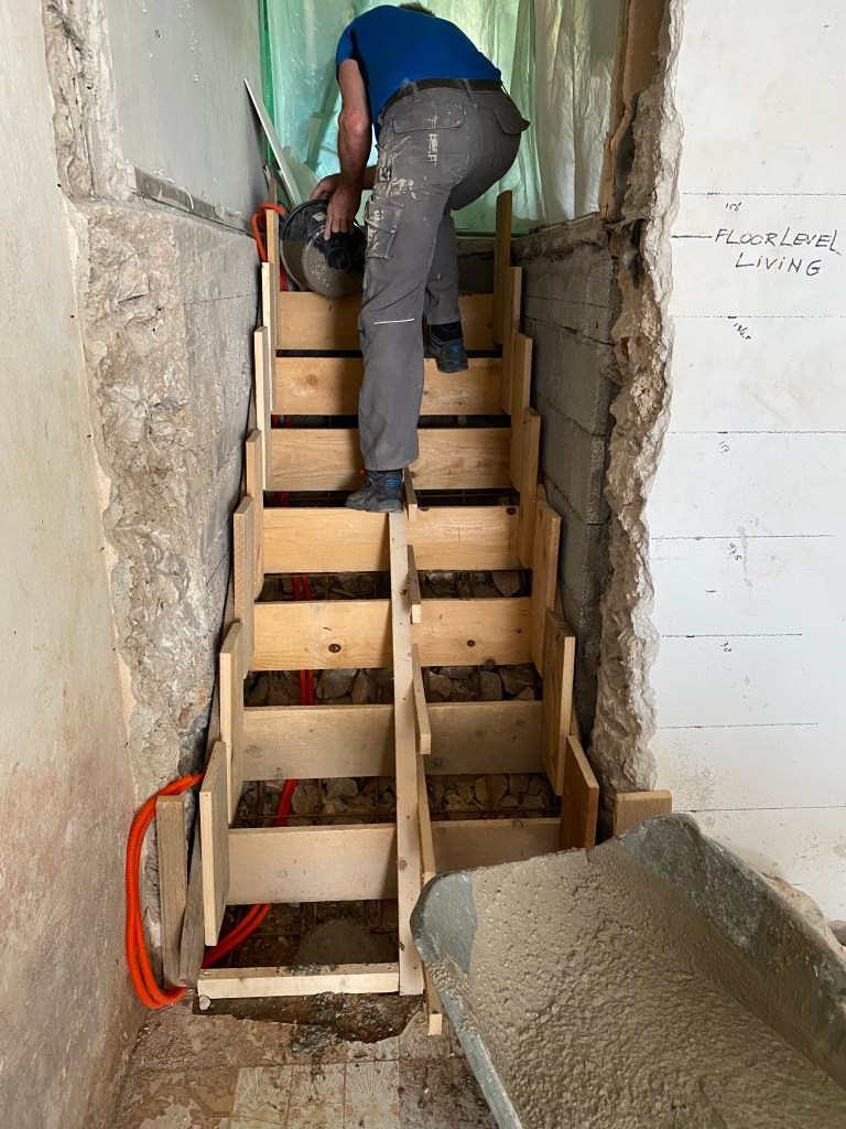 De volgende dag haalt manlief de bekisting weg van de trap en dan mogen we er ook overheen lopen. De verlossing noem ik het inmiddels.