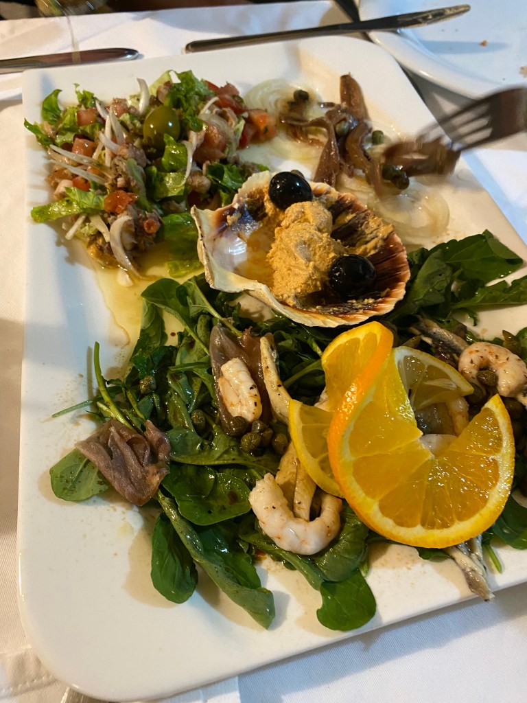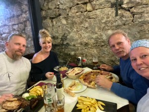 In škojić worden we hartelijk ontvangen door onze buurman en buurman. We bestellen een kip gorgonzola en een tomahawk steak.