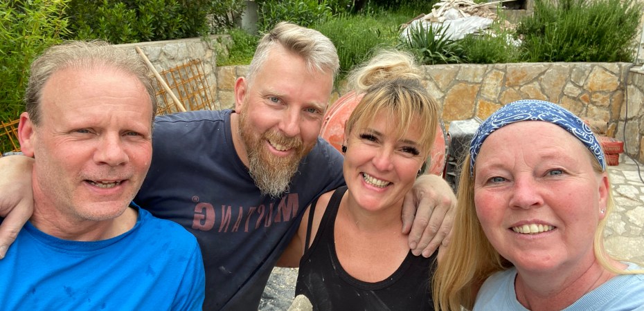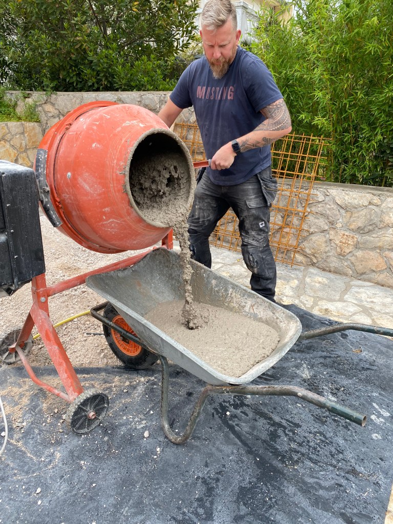 Als ik in de woonkamer sta hoor ik manlief met de een na de ander praten. De hele buurt is nieuwsgierig wat die gekke Hollanders allemaal aan het doen zijn. Ze zijn allemaal vol ongeloof wat manlief allemaal creëert. Niemand zou zich wagen aan zo een klus. Ja waarschijnlijk met dynamiet.. serieus ??