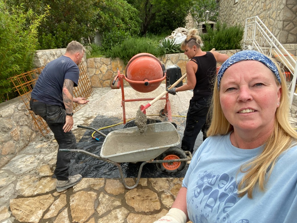 Daarna zet manlief het slijpapparaat in de vloer. Omg wat en kabaal !!! Niet te doen zeg. Ik vlucht naar buiten en zelfs daar is het een kabaal van hier tot Tokio. Maar goed hopelijk gaat het niet te lang duren, ondanks dat ben ik waarschijnlijk de enige die klaagt. Men vraagt vol bewondering af hoe we het voor elkaar krijgen en iedereen is super geïnteresseerd en indien nodig behulpzaam en supportief.