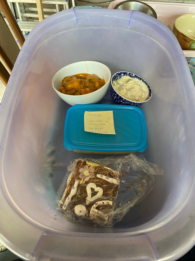 Bij thuiskomst hebben onze lieve vrienden ons weer verwend met allerlei lekkere dingen om de eerste momenten te overleven.