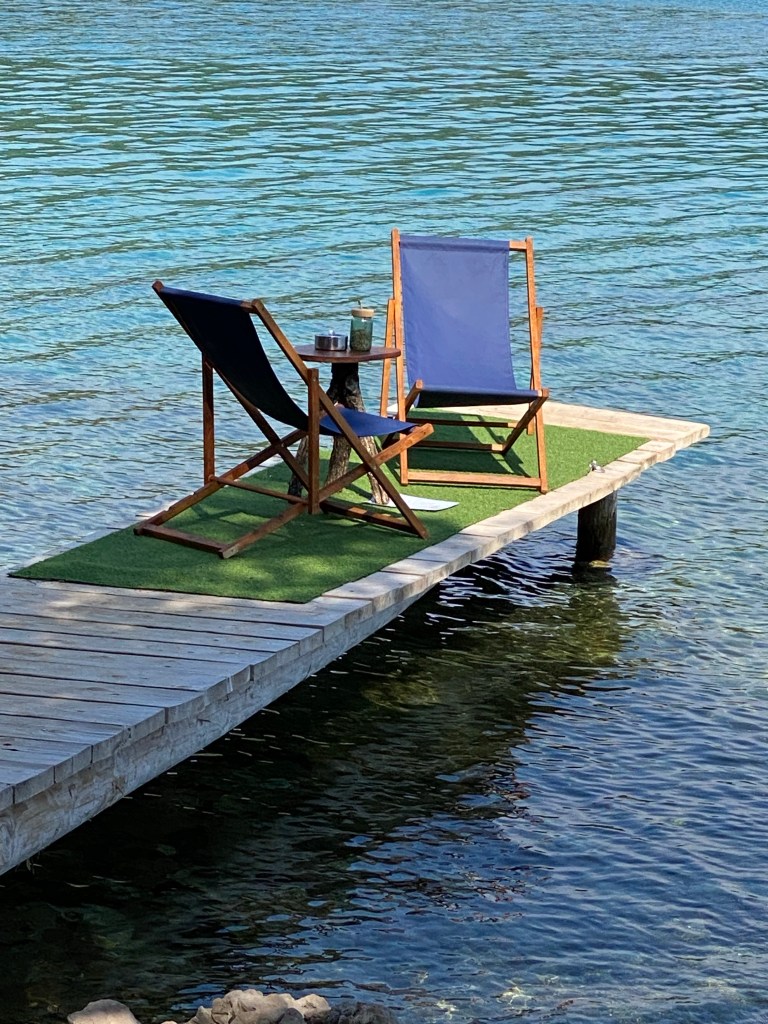 Het is heerlijk warm, de zon schijnt de lucht is blauw en met een ice koffie vermaak ik me prima. Er wordt al aardig wat gezwommen maar daar waag ik me vandaag niet aan.