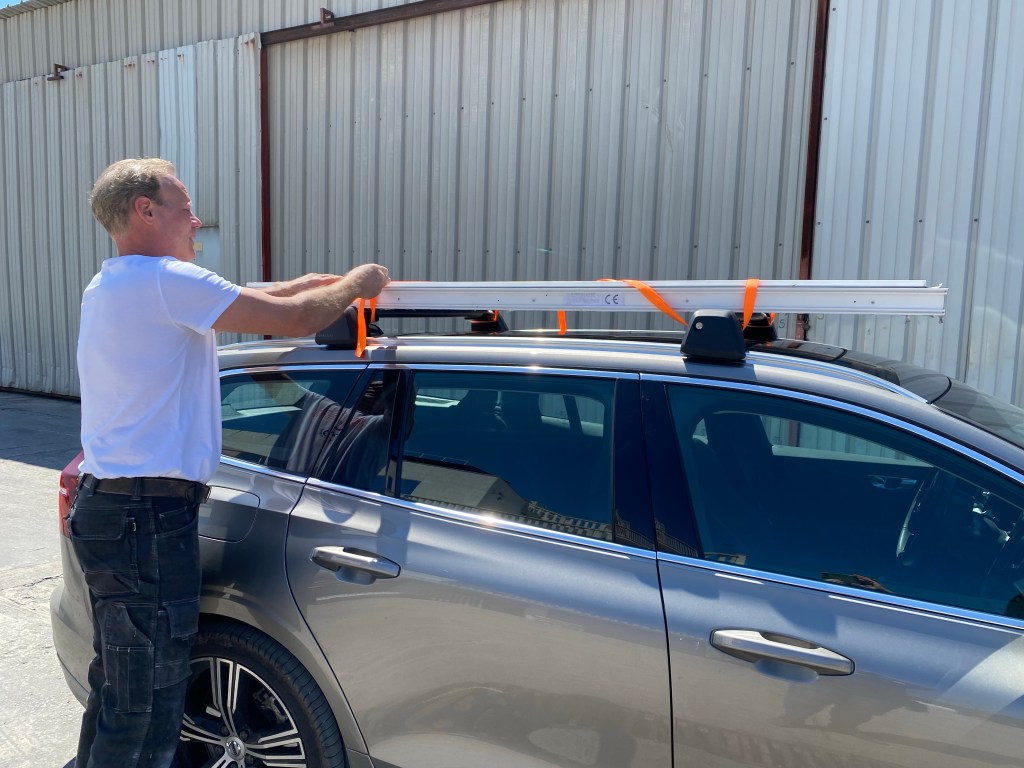 Op het moment dat manlief de dakdragers thuis wil gaan ophalen voor transport komt hij onze vriend tegen met zijn maten èn een vrachtauto. Deze bieden gelijk aan om de matten bij ons thuis af te gooien, dat scheelt een aantal keer heen en weer rijden !!