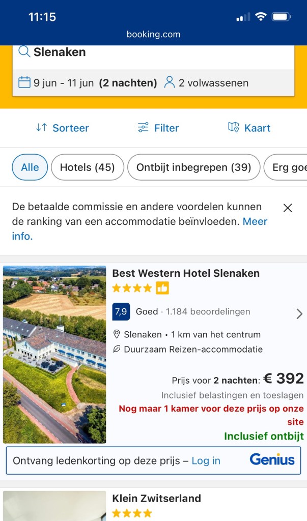 Maar, wat schetst mijn verbazing ? Het hotel blijkt via booking.com velen malen duurder dan via hun eigen website!!