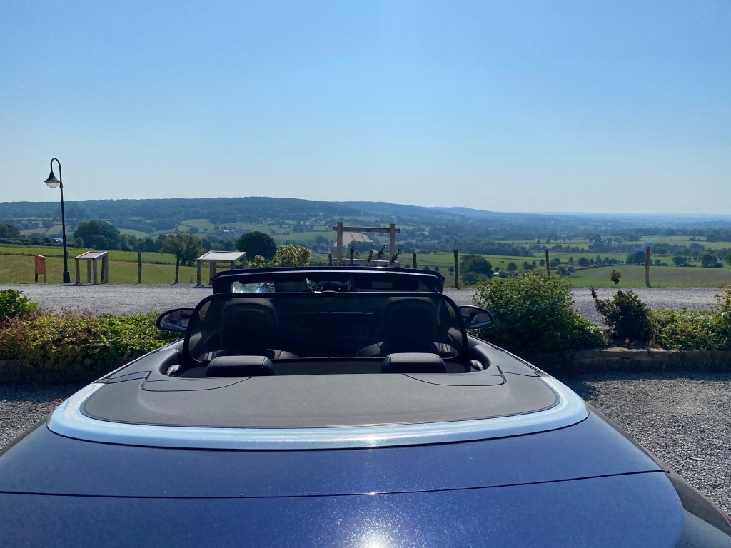 Het weer is nog steeds stralend en we tikken inmiddels dik de 34 graden aan. Omdat we met de kap open terug willen rijden, besluiten we alle snelwegen te mijden. Op deze manier kun je elkaar namelijk nog wel verstaan in de auto.