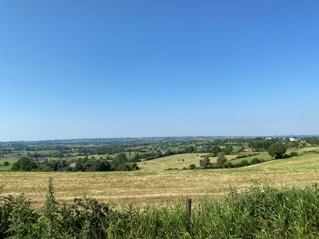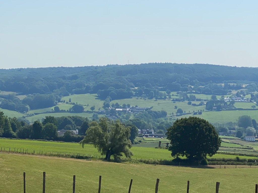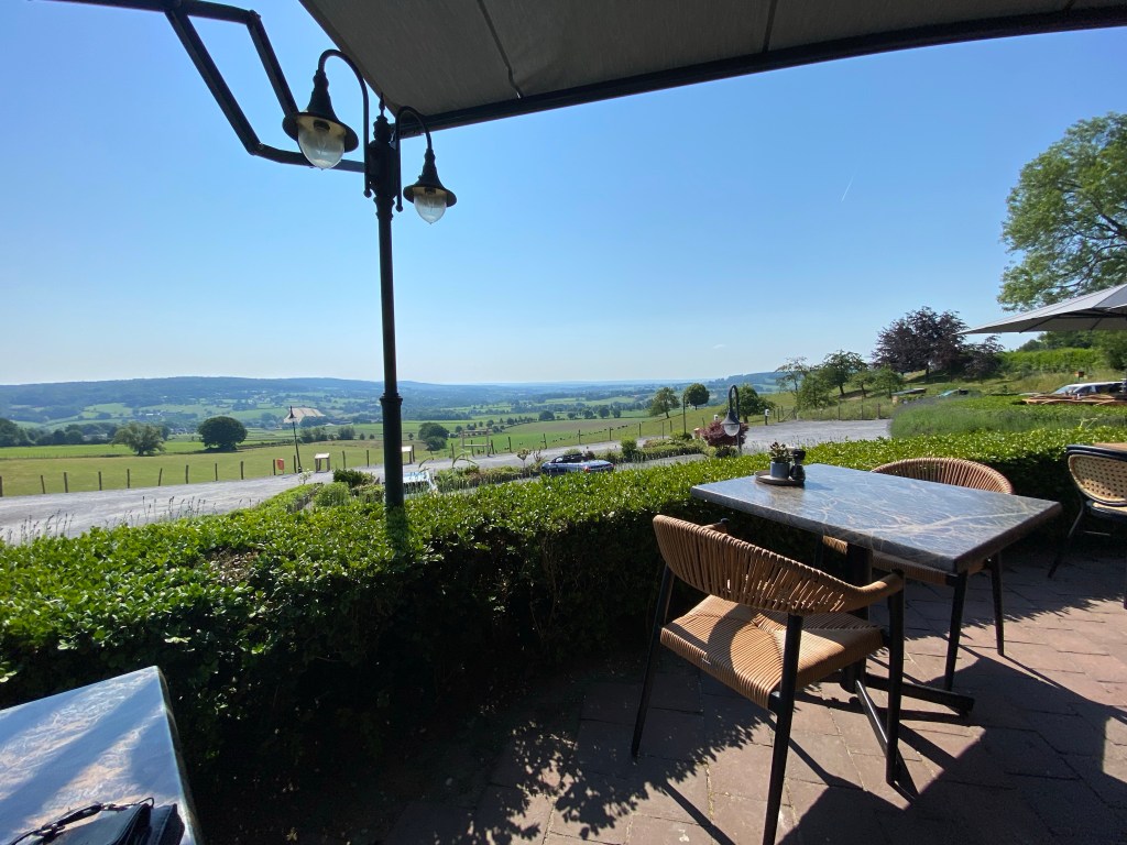 We rijden na de koffie zonder vlaai door en genieten van het uitzicht. Wat is Limburg toch mooi. En helemaal op zo een stralende dag als vandaag.