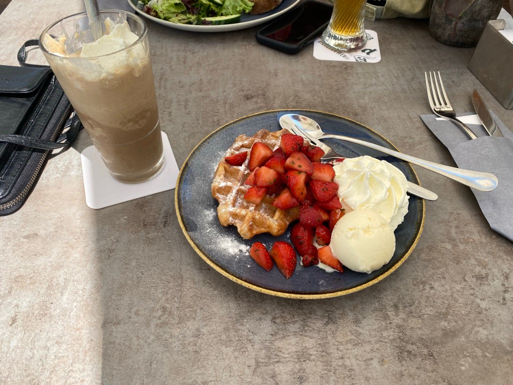 We bestellen een Belgische wafel een een Hollands broodje kroket, the best of both zeggen we maar.