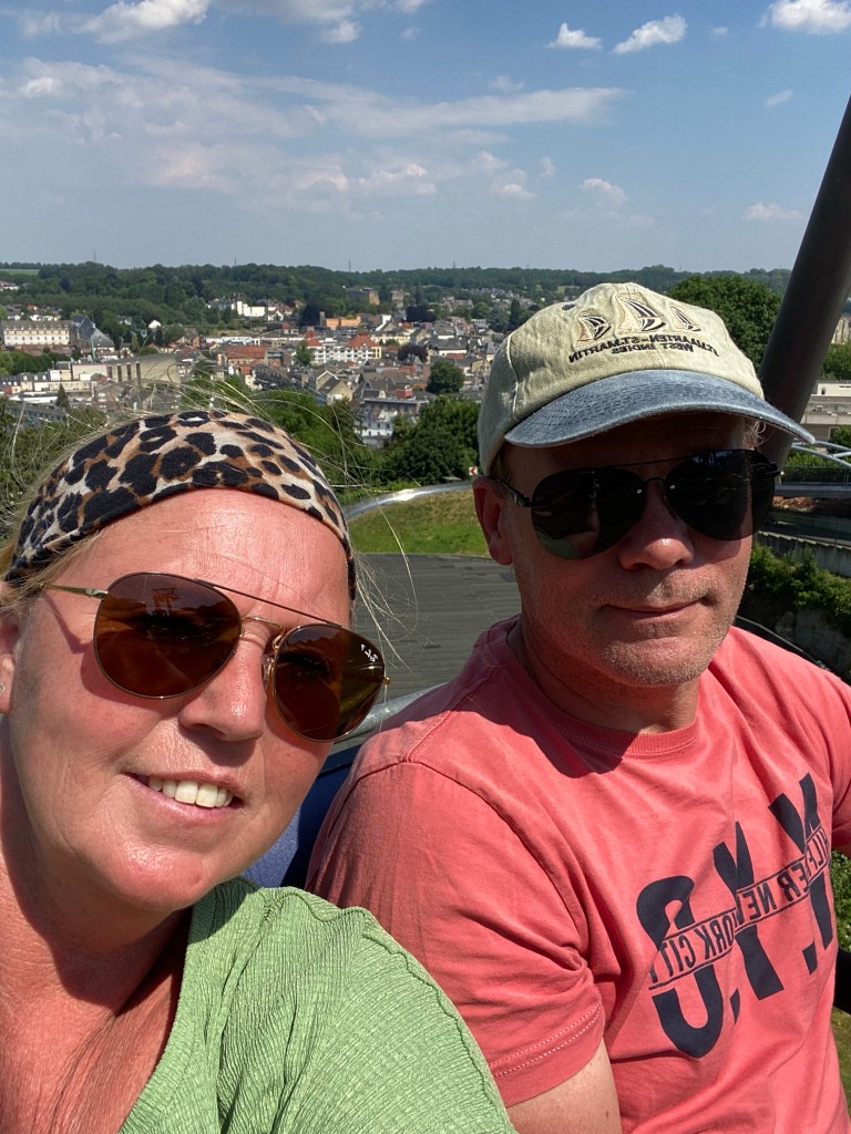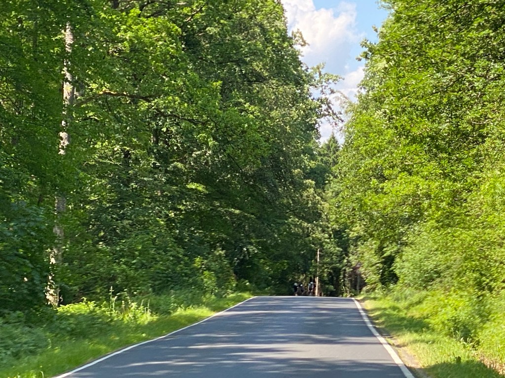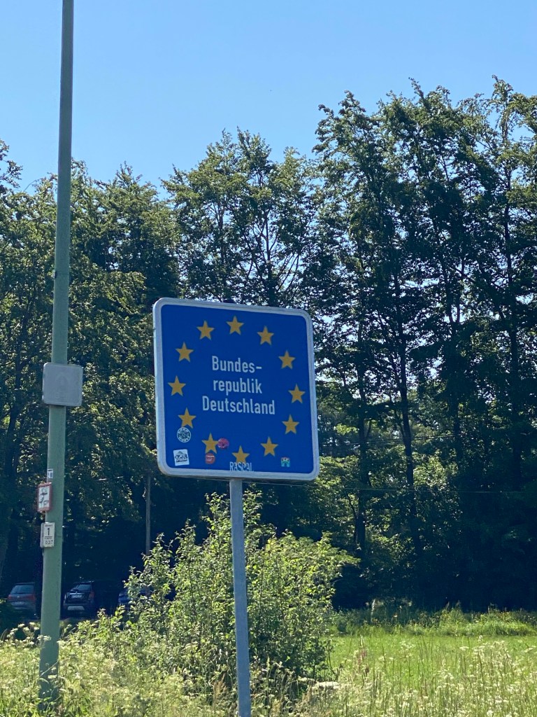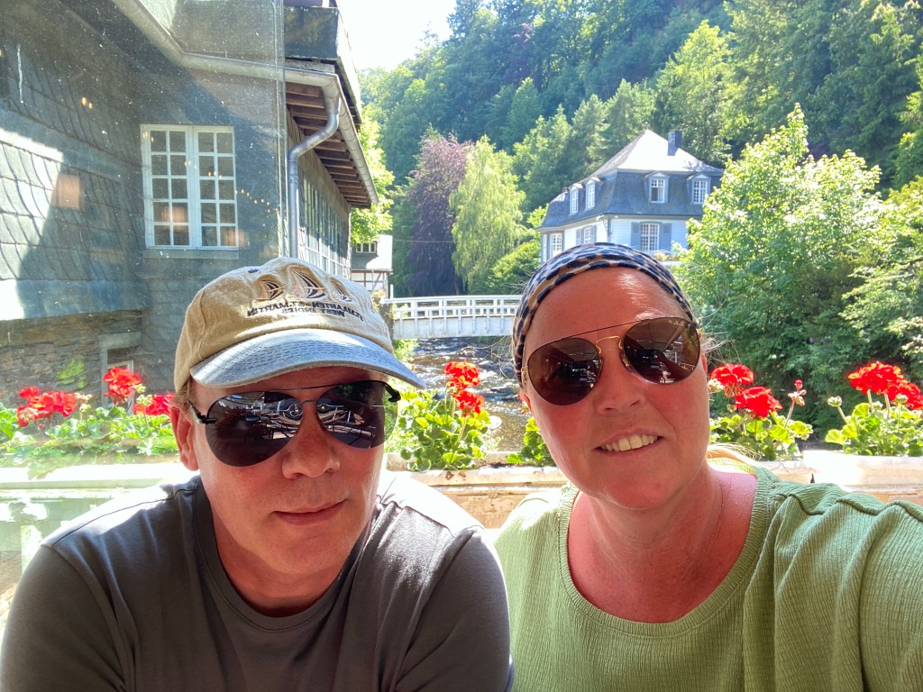 De route is prachtig, helemaal door de Eifel heen rijden is ontzettend mooi. We wisselen constant tussen België en Duitsland volgens de navigatie en dat vinden mijn meldingen van T mobile ook heel verwarrend. Ik krijg telkens meldingen welkom in België welkom in Duitsland welkom in België welkom in Duitsland tot grote hilariteit.
