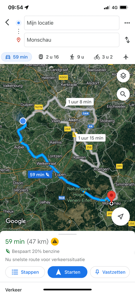 Het wordt wel een lange weg terug vanuit Monschau, maar we hebben alle tijd. Manlief hoeft maandag ochtend pas weer op het werk te verschijnen HAHAHA