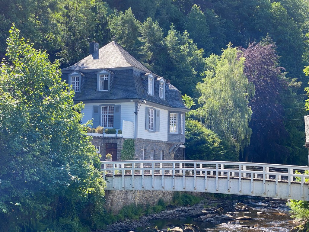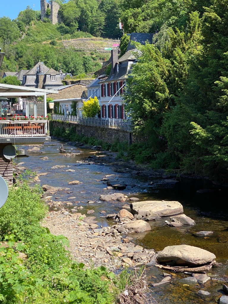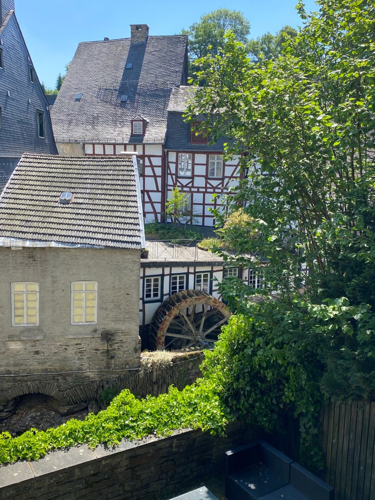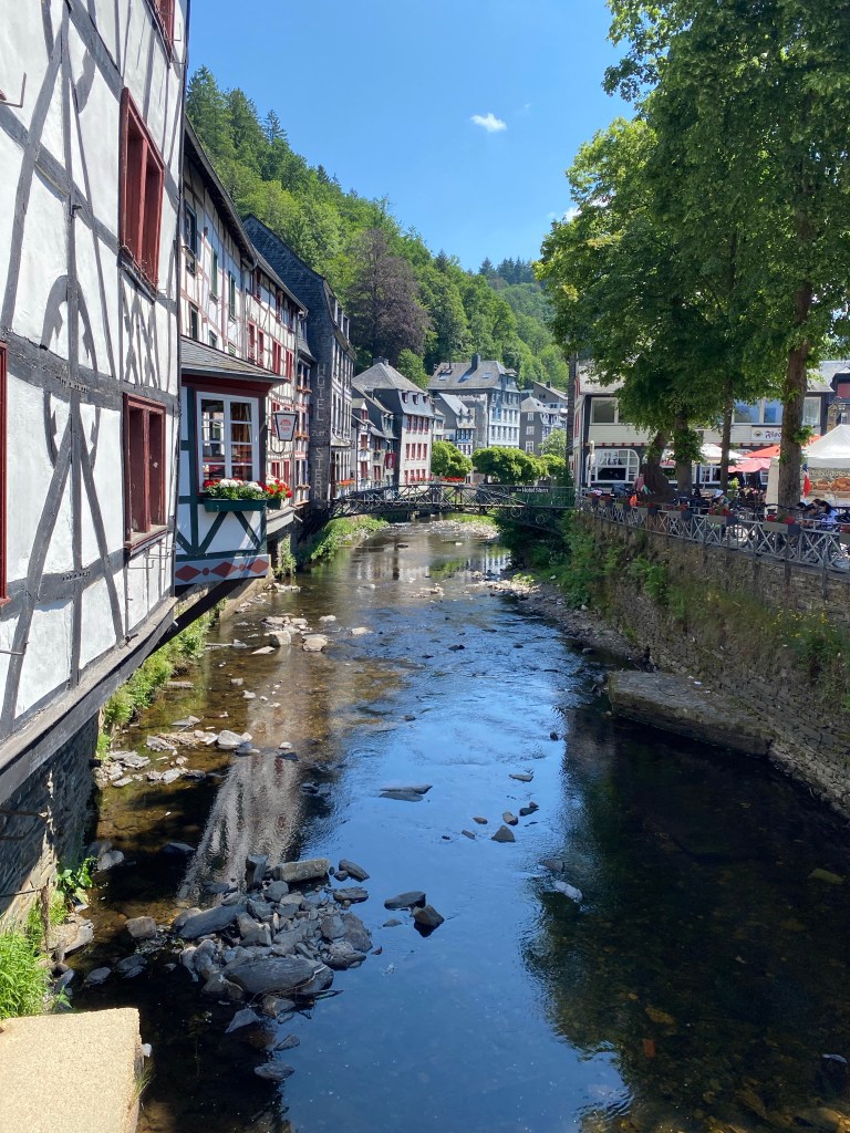 Eenmaal aangekomen in Monschau http://www.monschau.nl kijken we onze ogen uit. De pittoreske smalle straatjes met de typisch huizen idyllisch gelegen aan het klaterende water. Ik waan me echt op de set van een film.