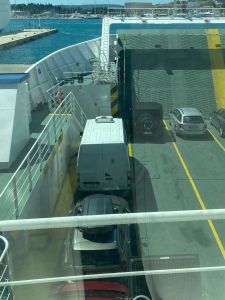 Als het zo ver is rijden we de ferry op en varen we richting het vaste land naar Split.