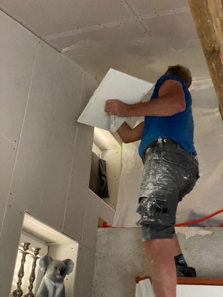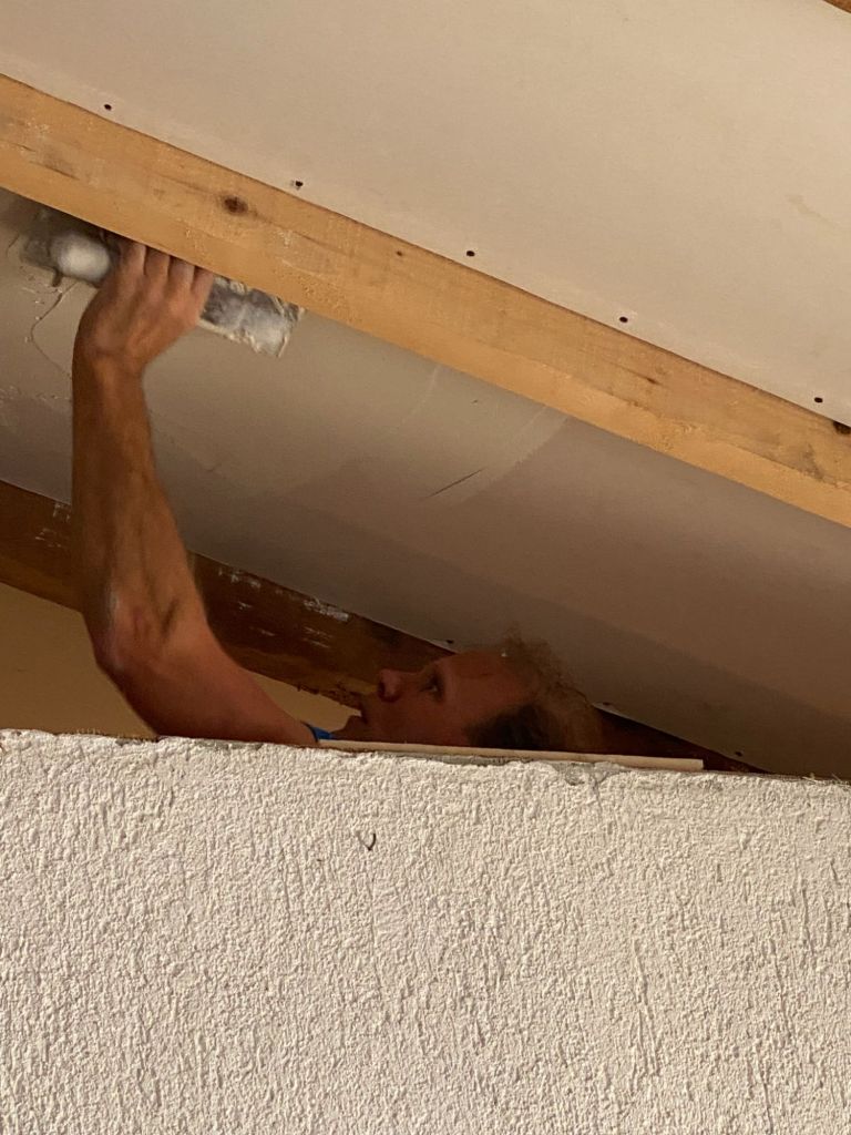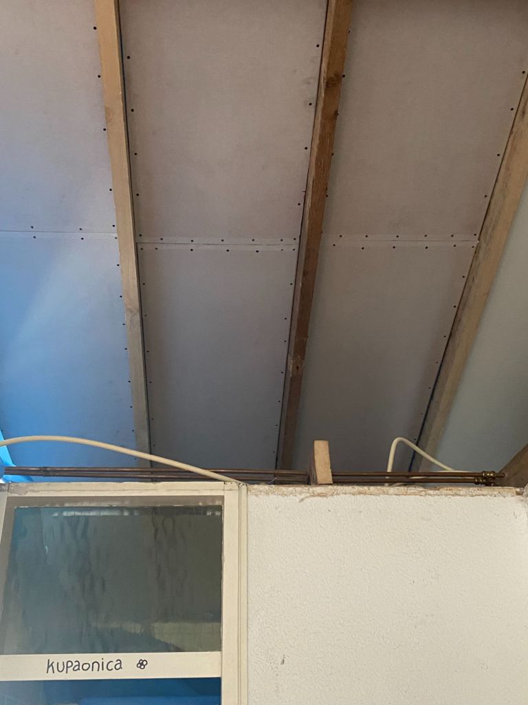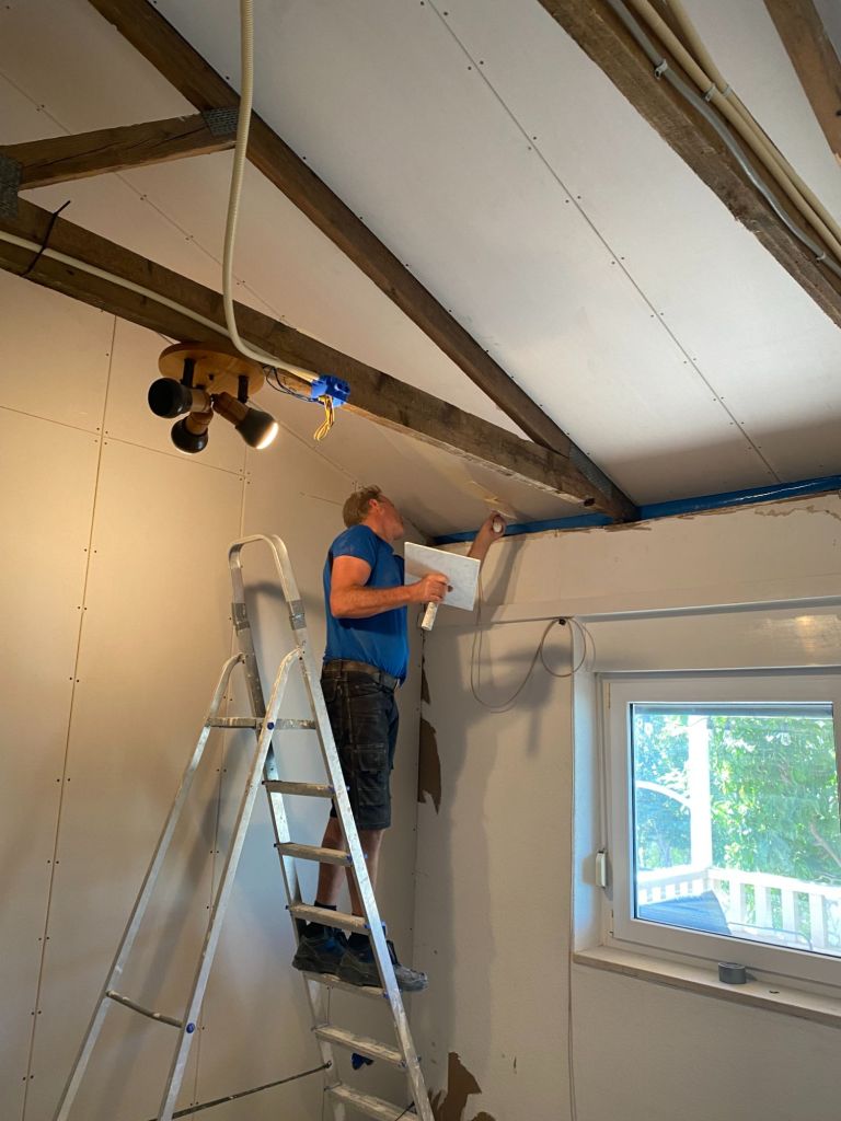 Ons doel van deze vakantie is onder andere; de plafonds boven de slaapkamers en badkamer te stuken.