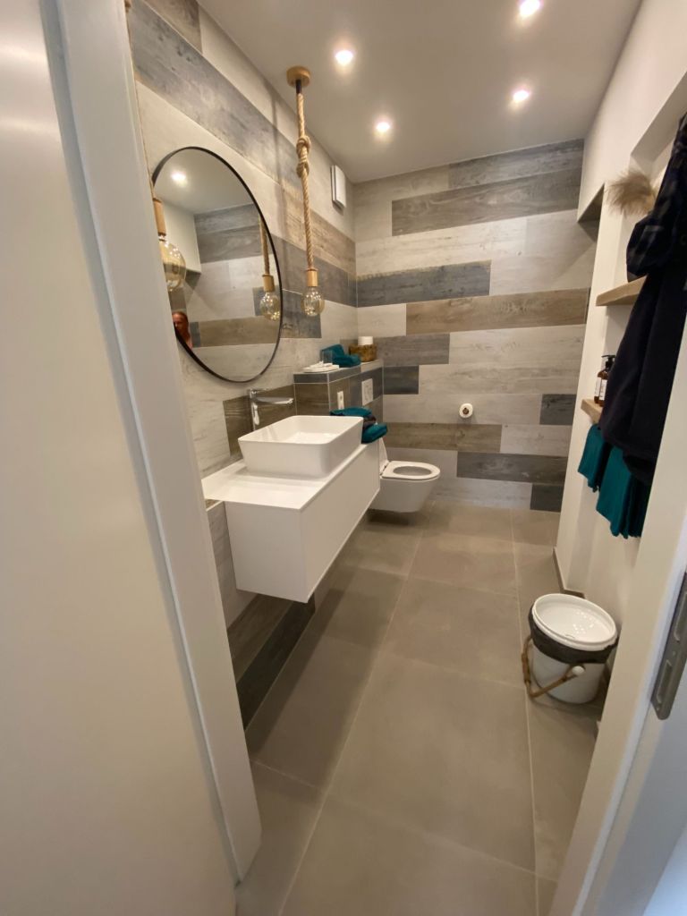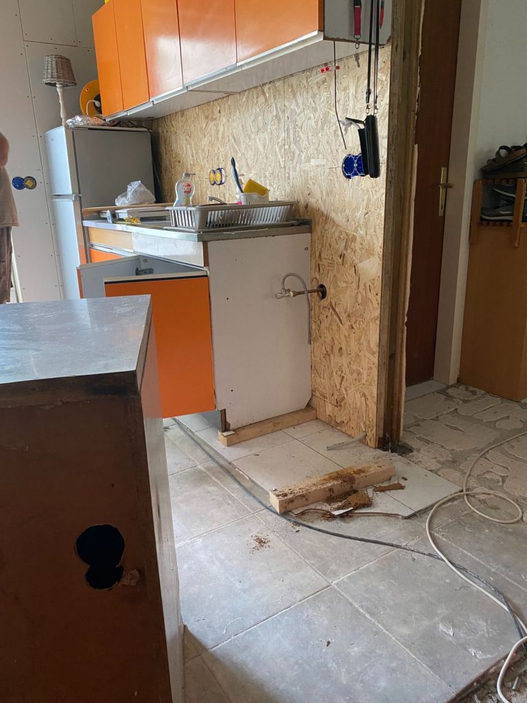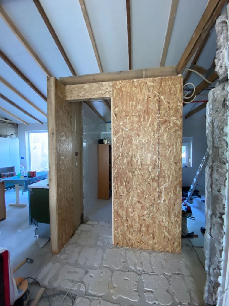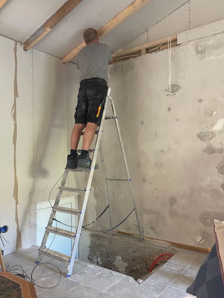 - oude wand badkamer verwijderd, nieuw erin en verzet