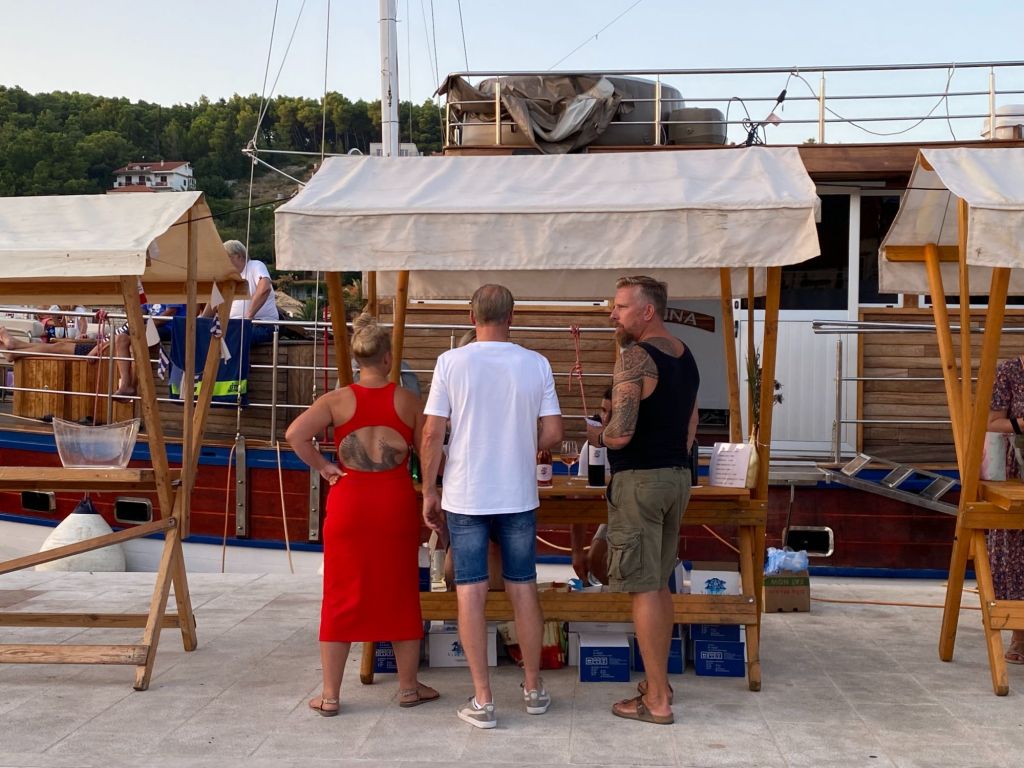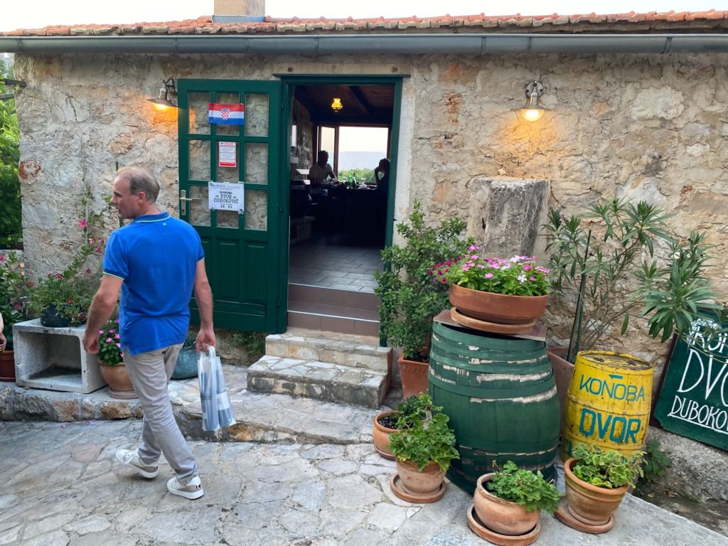 We hebben in de middag even een kado in het dorp gehaald. En wijn is in Kroatie altijd een goed kado.