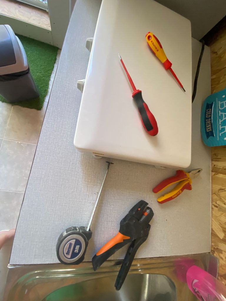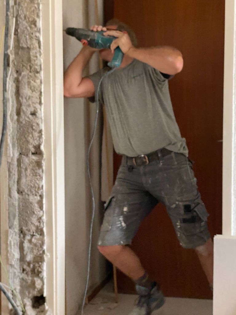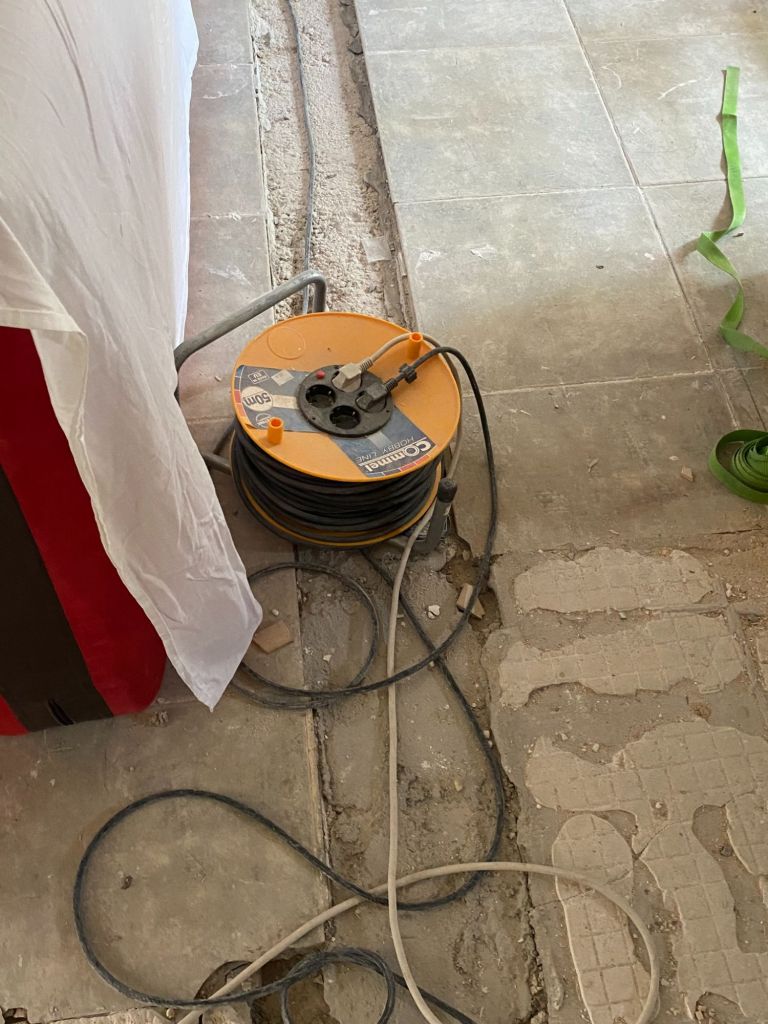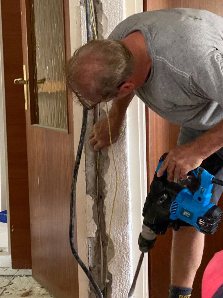 Vandaag gaan we nog meer elektra vervangen. We hebben sinds dag 1 overal haspels en verlengsnoeren liggen door het hele huis, waar we constant ons nek over breken. Dus daar moeten we maar eens vanaf. Dus gaan we draden trekken, en tijdelijke stopcontacten monteren. Ik help lekker mee en voor je het weet heb ik de slag te pakken en ben ik bijna een volleerd elektricien. die ook nog ondertussen een lasagne aan het voor bereiden is voor die avond.