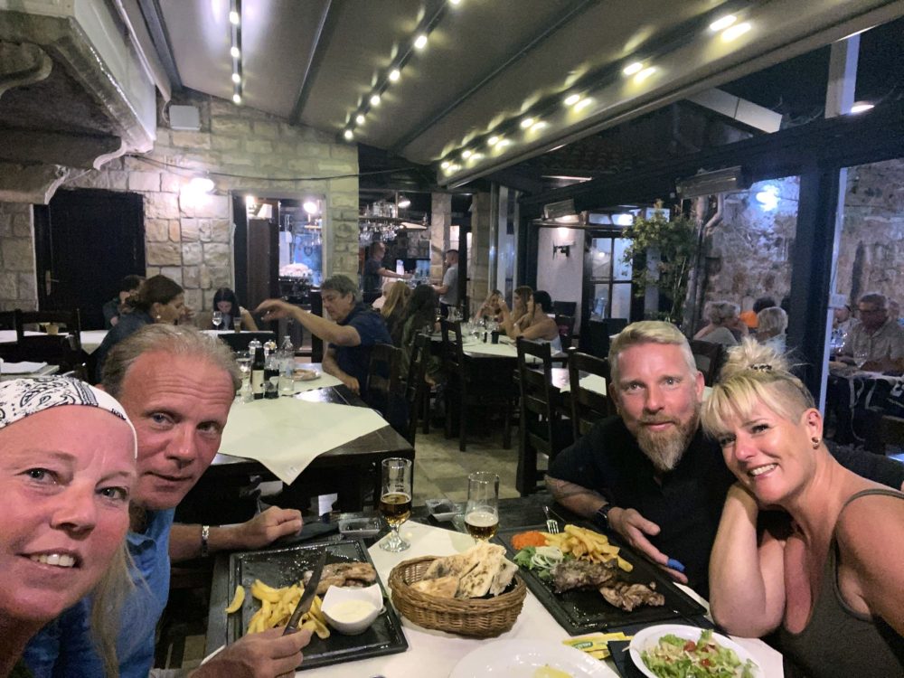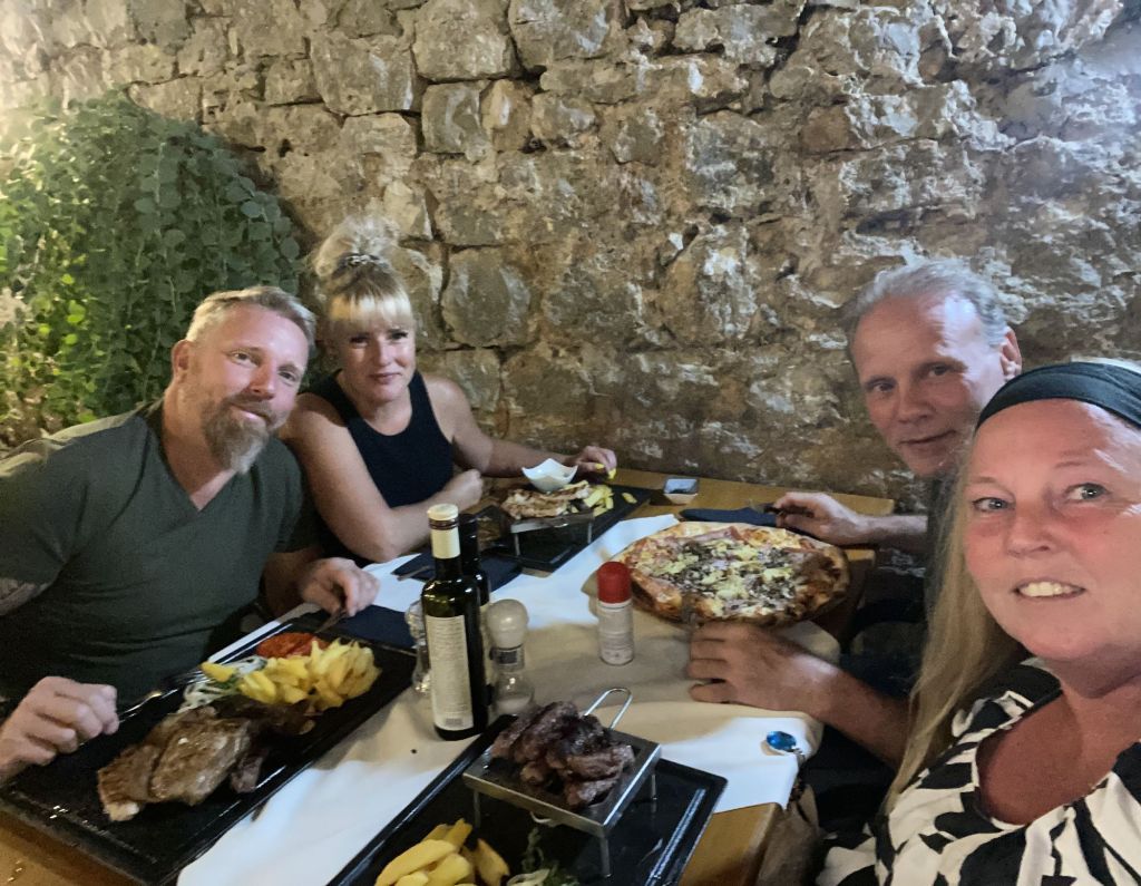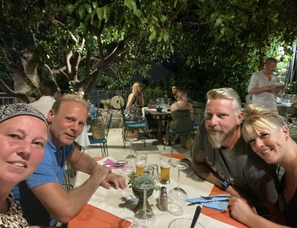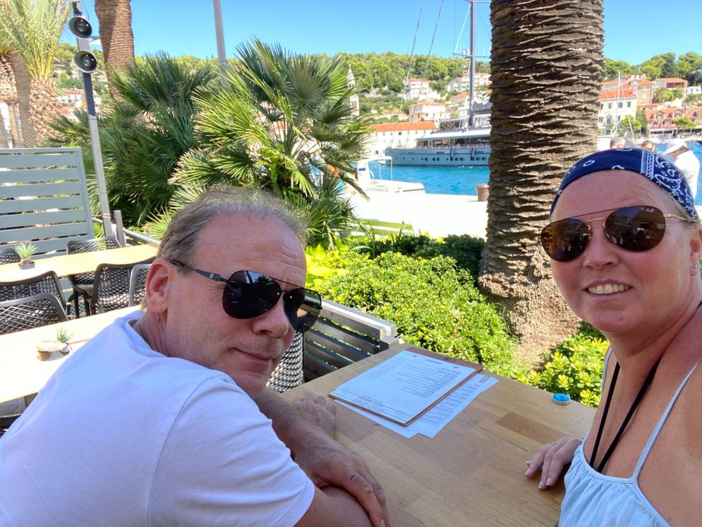 We worden enorm verwend door Ann en Jurgen en om ze te bedanken nemen wij ze ’s avonds mee uit eten naar het restaurant wat boven de haven ligt met een fenomenaal uitzicht Luka Gardelin Vrboska. Al was het natuurlijk alleen maar om een excuus te bedenken om te gaan uiteten.