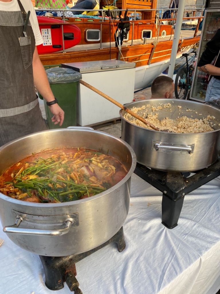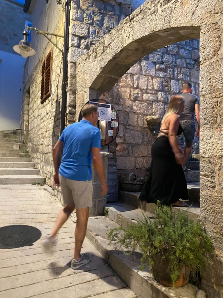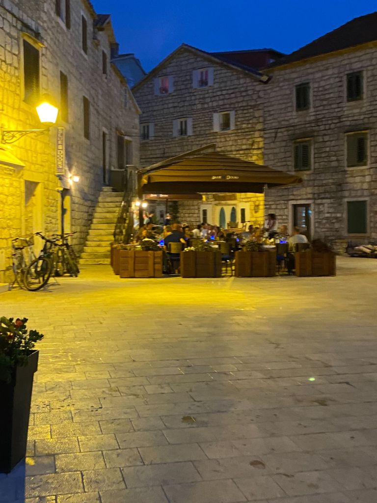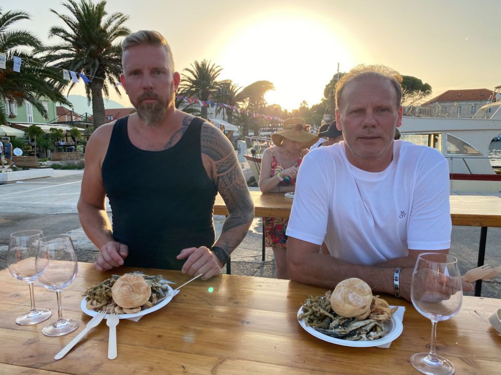 We worden enorm verwend door Ann en Jurgen en om ze te bedanken nemen wij ze ’s avonds mee uit eten naar het restaurant wat boven de haven ligt met een fenomenaal uitzicht Luka Gardelin Vrboska. Al was het natuurlijk alleen maar om een excuus te bedenken om te gaan uiteten.