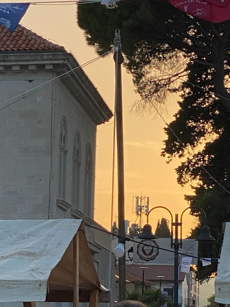 Later in de middag gaan we nog even naar de mall van Stari Grad. We noemen het gekscherend de mall, omdat er precies 5 winkels en een drogist en een supermarkt zitten. Oh ja en een koffie bar met terras met uitzicht op de haven waar de ferry is.