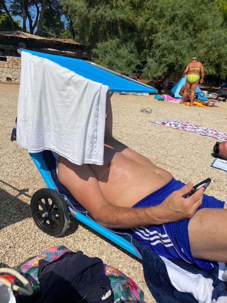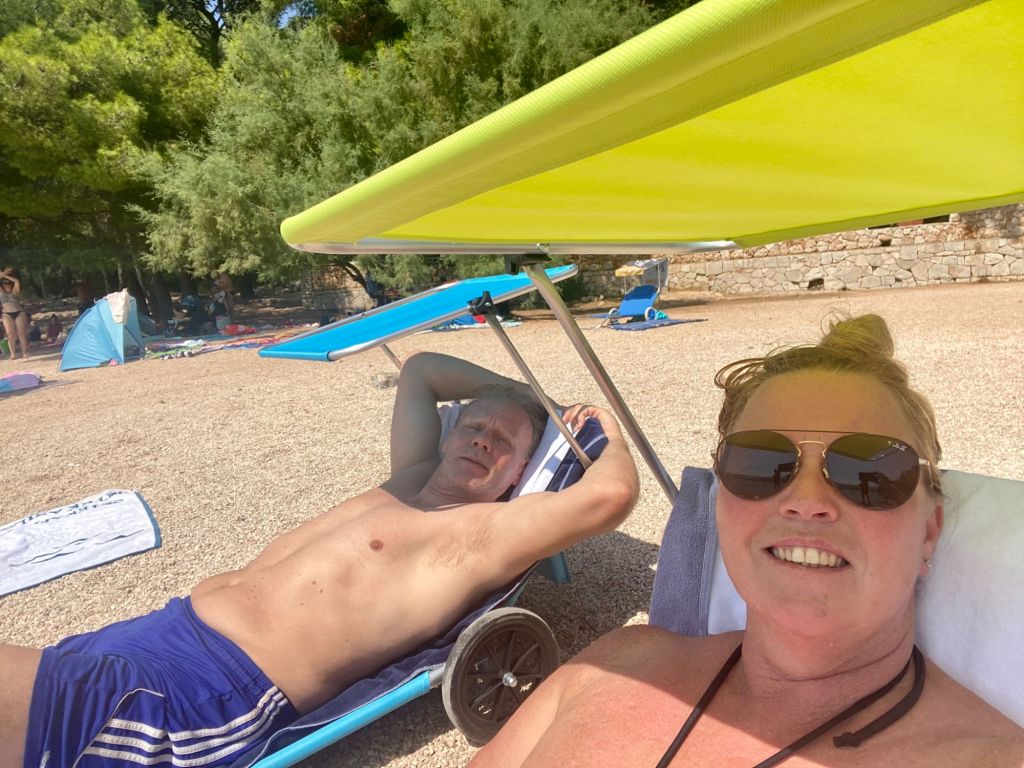 We genieten van een dagje strand en van elkaar. We zwemmen en liggen te bakken in de zon, eten en drinken wat zoals een echte vakantie hoort te zijn.