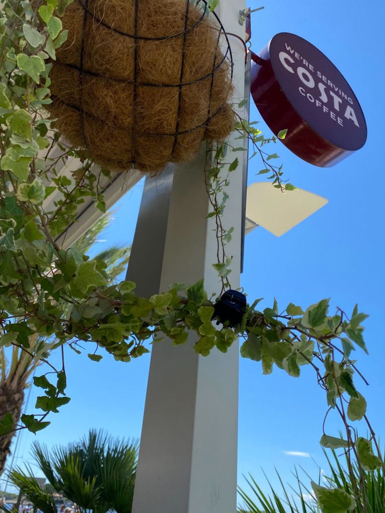 De Broaten komen vanavond bij ons eten. Want we hebben nu een gezellig buiten plekje. Wel met 1 miljoen muggen dus hangen we mug spiralen op die hun werk goed doen.