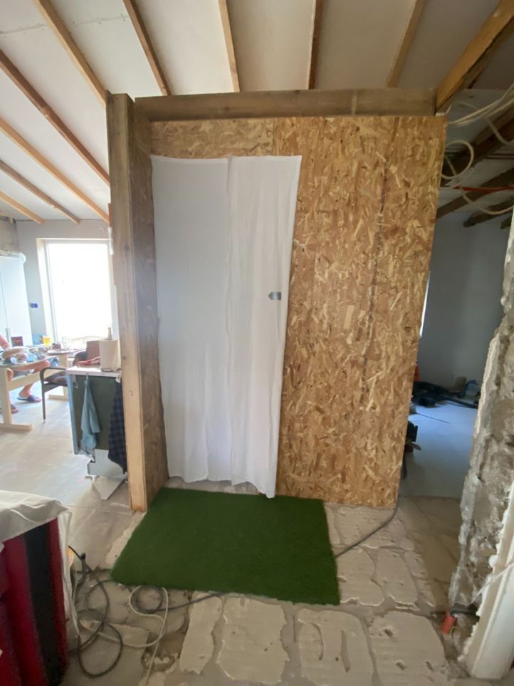 Nu lijkt de badkamer wel meer op een pashokje van een kledingwinkel, maar nu kan ook ik normaal naar de wc zonder gezien te worden als de voordeur wijd open staat.