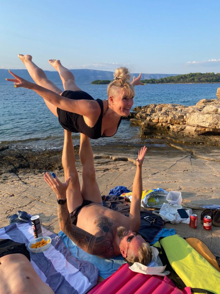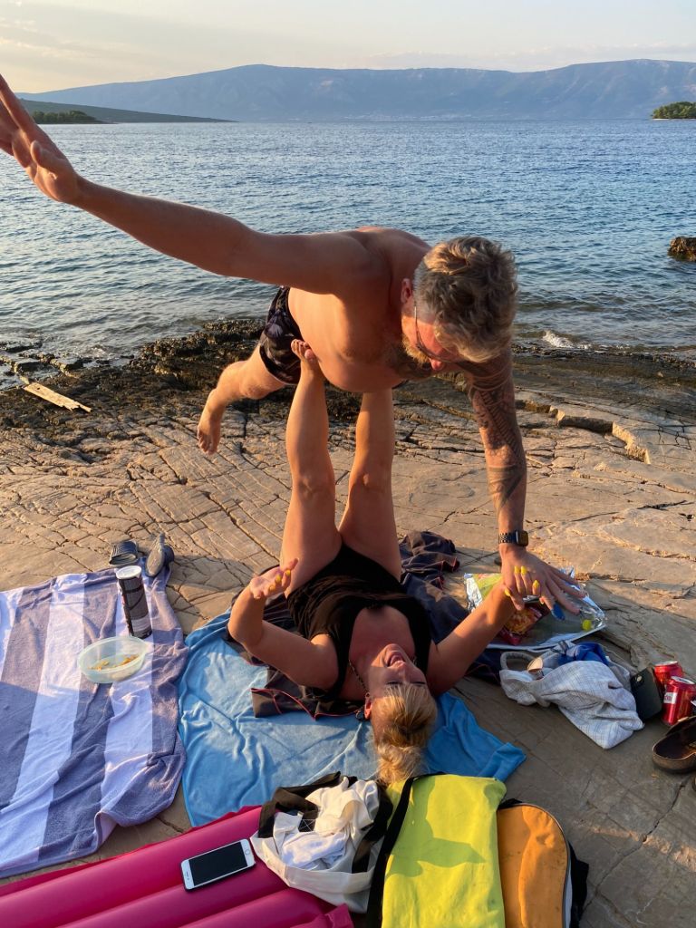 Later die middag vertrekken we naar het strand met een tas vol hapjes en een drankjes met onze vrienden. We nemen een duik in het water en onze vrienden voorzien ons ook van een stukje entertainment. het kan allemaal niet op.