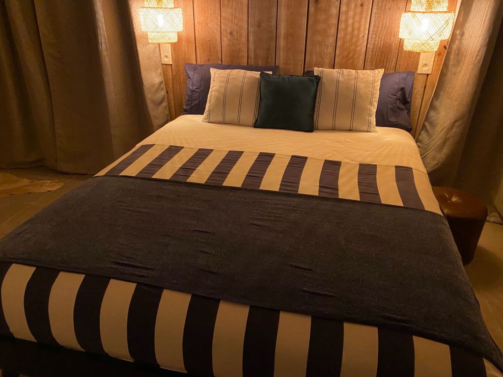 En omdat we onze vrienden graag een klein beetje privacy gunnen in het kleinste kamertje, komt er een chique bed laken te hangen.