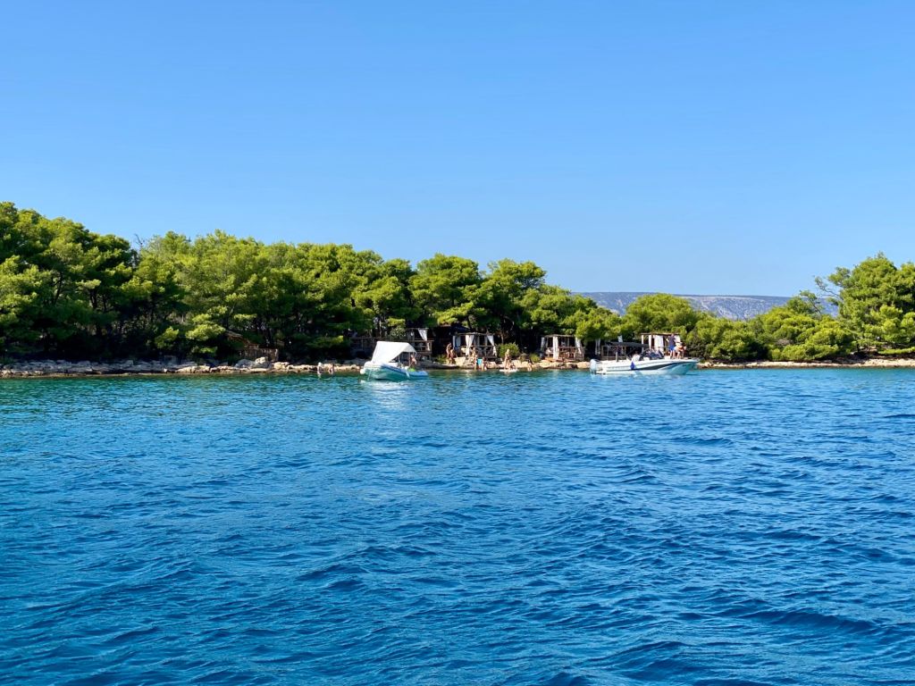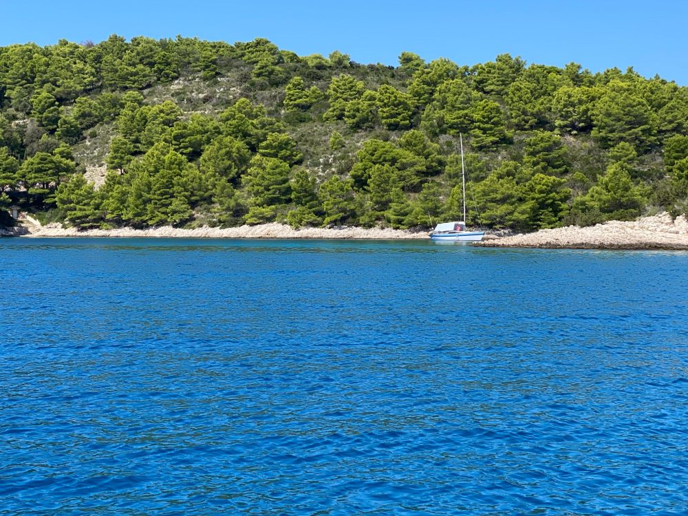 We zetten koers richting Bol gelegen op het eiland Brač. Maar omdat we al wat aan de late kant zijn en het er erg druk is, besluiten we niet aan te meren maar door te varen naar ons achtertuin eilandje Zečevo.