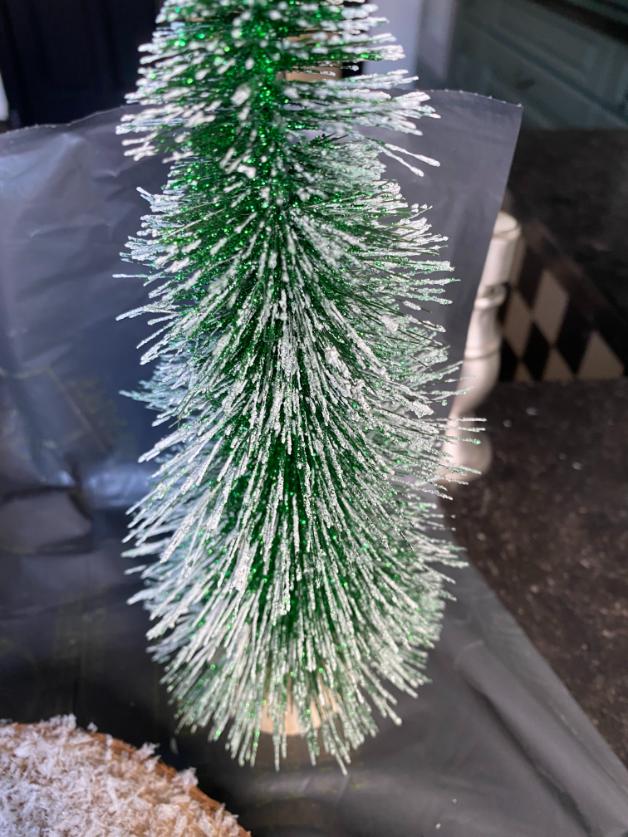 De boomstam plak spoot ik in met spuitlijm en daar overheen strooide ik de sneeuw.