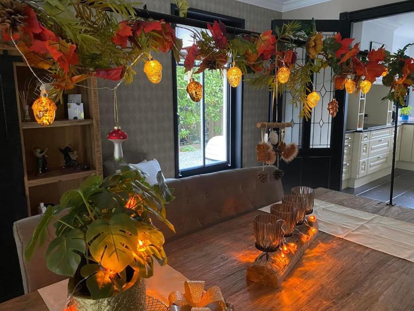 Voor de herfst hang ik er een herfst slinger aan met lampjes en herfst spulletjes die ik bij de Xenos haal.