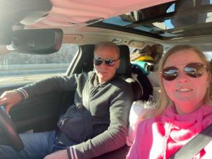 Na het 2 sterren diner lopen we naar de auto en wisselen we van plaats. Op weg naar een stukje vriendelijkheid, beter eten en hopelijk zon.