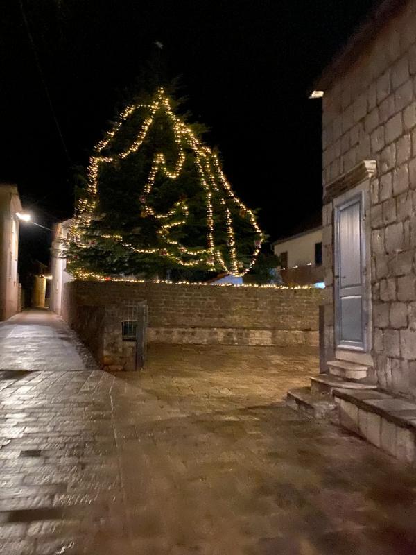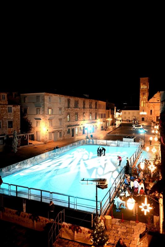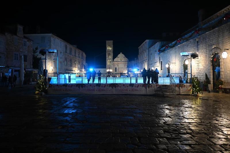In de avond gaan we samen naar Hvar stad waar het plein (Trg Sv. Stjepana) helemaal in kerstsfeer is om gedoopt. Er is weer een schaatsbaan waar het gezellig druk is. Er zijn allerlei kraampjes waar we een fantastische hamburger scoren en wat drinken. Het is helaas wel wat frisser als andere jaren dus hebben we onze dikkere jassen aan en strijken we neer onder een terras verwarmer, wat eigenlijk niet echt nodig blijkt.