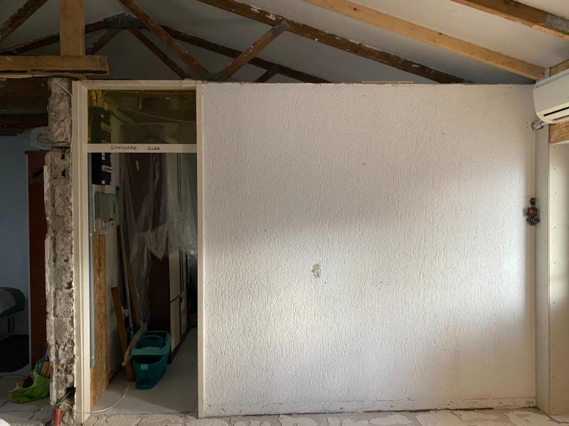 Er moet een muur worden verwijdert. Het gaat om de muur tussen de woonkamer en de 2e slaapkamer. Die gaan we weghalen en in plaats daarvan komt er een mobiele glazen wand voor terug. Hiervoor zijn we al in Nederland op pad geweest.
