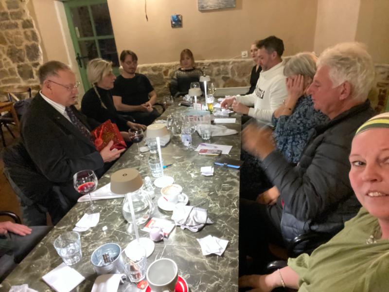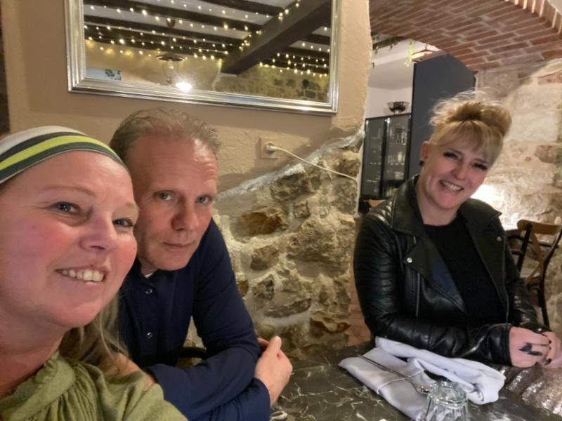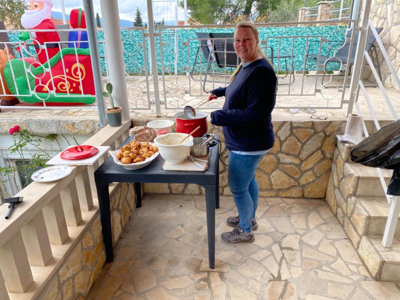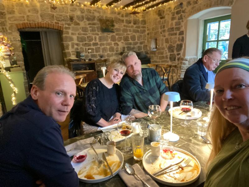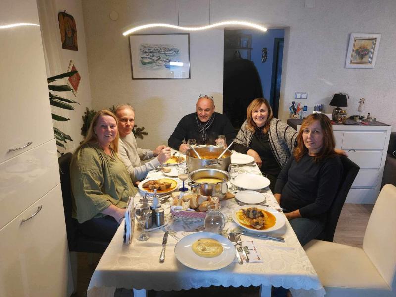 Die avond zijn we uitgenodigd bij onze lieve andere overburen. De buren die onder ander restaurant Skojic in ons dorp bezitten.