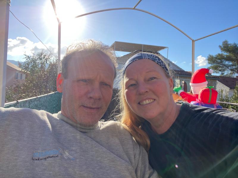 We halen de auto deels leeg. Verplaatsen de kerstman naar het zonnedek zodat iedereen kan genieten van onze geweldige kerstversiering. Morgen gaan we verder met versieren.