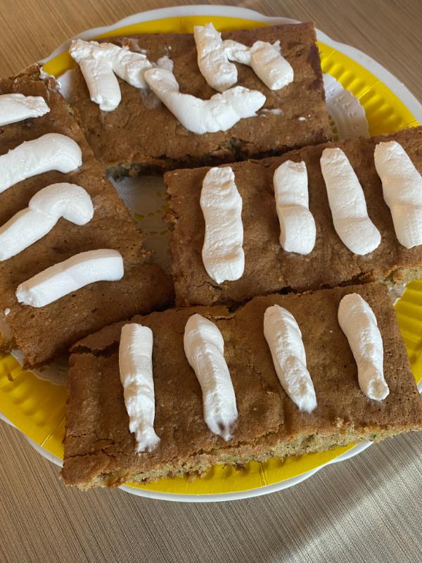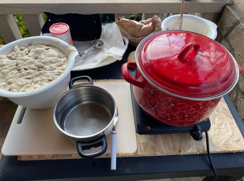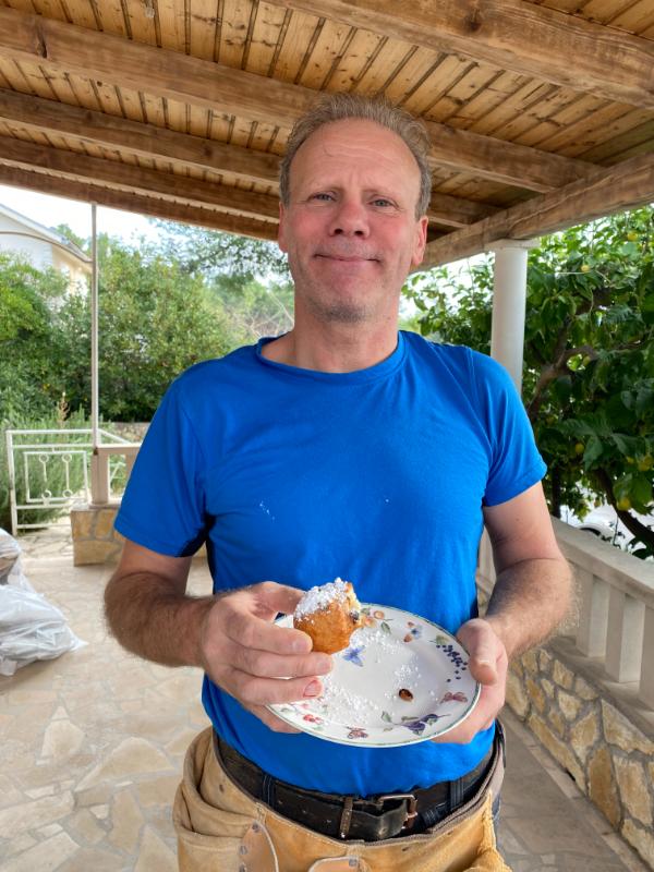 Omdat hij natuurlijk uiteraard wel pauze moet nemen (zegt mams) brengt ze nog een overheerlijke snack langs. Wat worden we toch altijd in de watten gelegd door onze lieve Vrboska mams.