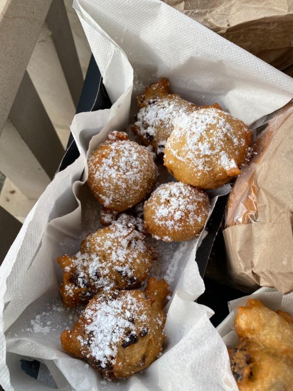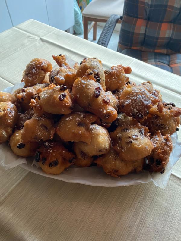 De bolletjes worden gebakken en geproefd en uiteraard overal weer rond gebracht tot iedereens grote vreugde.